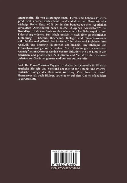 des Herausgebers.- Zur Wissenschaftsgeschichte der biogenen Arzneistoffe.- Biogene Arzneistoffe - heute noch oder heute wieder?.- Chemisch modifizierte biogene Arzneistoffe.- Biogene Arzneistoffe als Modell synthetischer Arzneistoffe.- Biogene Arzneistoffe als Modell und Ausgangsmaterial partial-.- synthetischer Arzneistoffe.- Biogene Stoffe als Rohstoffe bei der Synthese von Arzneistoffen.- Biogene Stoffe als "geistige Anreger"der Synthese von Arzneistoffen.- Die Suche nach neuen biogenen Arzneistoffen.- Suche nach biogenen Stoffen mit antineoplastischer Wirkung.- Die Regulation des Sekundärstoffwechsels.- Was ist Sekundärstoffwechsel?.- Genetik des Sekundärstoffwechsels.- Die Enzymologie des Sekundärstoffwechsels.- Die Regulation der Genexpression im Sekundärstoffwechsel.- Die Bedeutung sekundärer Naturstoffe für die Produzenten.- Schlußfolgerungen.- Zur möglichen Funktion von Sekundärstoffen in biologischen Systemen.- Was sind Sekundärstoffe?.- Warum Sekundärstoffwechsel?.- Sekundärstoffe als Stoffwechselschlacken.- Sekundärstoffe und Ökosystem.- Sekundärstoffe im Dienste des eigenen Organismus.- Sekundärstoffe als metabolische Exkrete.- Sekundärstoffwechsel, das Experimentierfeld der Evolution.- Resumé.- Pflanzliche Gewebe- und Zellkulturen als Arzneistoffproduzenten.- Einleitung: Das Konzept der Omnipotenz der Zelle.- Gewebekulturen zur direkten Produktion von Arzneistoffen.- Gewebekulturen als Produzenten neuer, in intakten Pflanzen nicht.- vorhandener Substanzen.- Kalluskulturen zur Partialsynthese neuer Substanzen.- Gewebekulturen als Ausgangsmaterial für die vegetative Vermehrung von Arzneipflanzen.- Kalluskulturen als Stamm-Material für Hochleistungspflanzen.- Virus- und pilzfreie sowie resistente Arzneipflanzen durchGewebekulturen.- Entflechtung von Chimären mit Hilfe von Gewebekulturen.- Die Bedeutung von Haploiden-Kulturen.- Zur Rolle von Protoplastenkulturen.- Abschluß und Ausblick.- Tierische Zellkulturen als Produzenten von Arzneistoffen.- Die Zellkultur als Quelle von Impfstoffen gegen Virusinfektionen.- Impfstoffe, die nicht aus Zellkulturen stammen.- Hormonproduktion in Zellkulturen.- Gewinnung monoklonaler Antikörper.- Interferon-Produktion.- Schlußfolgerungen.- Die Produktion von Arzneistoffen durch Mikroorganismen - Voraussetzungen, Möglichkeiten und Grenzen.- Produktion einzelner Verbindungen des Grundstoffwechsels sowie von Enzymen119 Produktion von Sekundärstoffwechselprodukten am Beispiel der Herstellung von Penicillin.- Die Produktion weiterer arzneilich verwendeter Sekundärstoffwechselprodukte durch Mikroorganismen.- Mikrobielle Stoffumwandlungen.- Zukunftsweisende Methoden der Primär- und Sekundärstoffproduktion durch Mikroorganismen.- Genmanipulation und Arzneistoffe von morgen.- Methodische Grundlagen.- Programmierung von Mikroorganismen.- Produktion von Insulin.- Produktion von Impfstoffen.- Produktion von Interferon.- Mögliche Risiken.- Sicherheitsrichtlinien.- Effizienz biologischer Sicherheitsmaßnahmen.- Bedeutung der Chemotaxonomie für die Pharmazeutische Biologie.- Chemotaxonomie und Pflanzenklassifikation.- Chemotaxonomie und Sippenbildung.- Chemotaxonomie und Pharmazeutische Biologie.- Schlußbetrachtungen.- Aktuelle Züchtungsforschung mit Arzneipflanzen: Ergebnisse und Perspektiven.- Einführung.- Haploide und ihr Nutzen.- Mutagenese in Zellkulturen.- Somatische Hybridisierung.- Nutzung "natürlicher"genetischer Manipulation für die Pflanzenzüchtung.- Schlußbetrachtung.- Phytotherapie, ein Teil der modernen Medizin.- Historie.-Definition des Begriffes "Phytotherapie".- Probleme der Herstellung und des Einsatzes von Phytotherapeutika.- Nachweis der Wirkung von Phytotherapeutika.- Einige Beispiele für Wirkungen und Wirkungsweisen ausgewählter Phytotherapeutika.- Phytotherapeutika mit "adaptogener"Wirkung.- Weitere Beispiele für den Einsatz der Phytotherapie in der modernen Medizin.- Schlußwort.- Ethnomedizin und Ethnopharmakologi