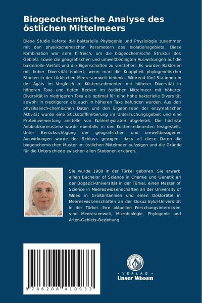 Diese Studie lieferte die bakterielle Phylogenie und Physiologie zusammen mit den physikochemischen Parametern des Isolationsgebiets. Diese Kombination war sehr hilfreich, um die biogeochemische Struktur des Gebiets sowie die geografischen und umweltbedingten Auswirkungen auf die bakterielle Vielfalt und die Eigenschaften zu verstehen. Es wurden Bakterien mit hoher Diversität isoliert, wenn man die Knappheit phylogenetischer Studien in der türkischen Meeresumwelt bedenkt. Während fünf Stationen in der Ägäis im Vergleich zu Küstensedimenten mit höherer Diversität in höheren Taxa und tiefen Becken im östlichen Mittelmeer mit höherer Diversität in niedrigeren Taxa als optimal für eine hohe bakterielle Diversität sowohl in niedrigeren als auch in höheren Taxa befunden wurden. Aus den physikalisch-chemischen Daten und den Ergebnissen der enzymatischen Aktivität wurde eine Stickstofflimitierung im Untersuchungsgebiet und eine Proteinverwertung anstelle von Kohlenhydraten abgeleitet. Die höchste Antibiotikaresistenz wurde ebenfalls in den Küstensedimenten festgestellt. Unter Berücksichtigung der geografischen und umweltbezogenen Auswirkungen wurde der Schluss gezogen, dass all diese Daten die biogeochemischen Muster im östlichen Mittelmeer aufzeigen und die Gründe für die Unterschiede zwischen allen Stationen erklären.