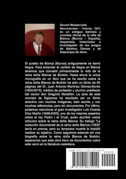 El pueblo de Blanca (Murcia) antiguamente se llamó Negra. Para entender el cambio de Negra en Blanca tenemos que concebir primeramente la vida de la reina doña Blanca de Borbón. Hasta ahora la única monografía en un libro que se ha escrito sobre la reina doña Blanca de Borbón ha sido un librito de 80 páginas del Dr. Juan Antonio Martínez Gómez-Gordo (1924-2013), médico de profesión y alumno predilecto del doctor don Gregorio Marañón. Por último, podemos mencionar al gran investigador Luis Vicente Díaz Martín (1946-2000), uno de los mejores expertos sobre el rey Pedro I el Cruel, quien escribió varios artículos sobre la reina doña Blanca. Su trabajo "La colección documental de la reina doña Blanca (1353)" tenía en prensa, pero su temprana muerte le impidió realizar su objetivo. Como seguimos estando sin una biografía sobre la reina doña Blanca de Borbón, esperamos que esta obra lleno de documentos cubra este vacío en la literatura castellana.