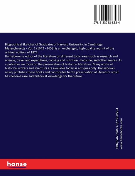 Biographical Sketches of Graduates of Harvard University, in Cambridge, Massachusetts - Vol. 1 (1642 - 1658) is an unchanged, high-quality reprint of the original edition of 1874.