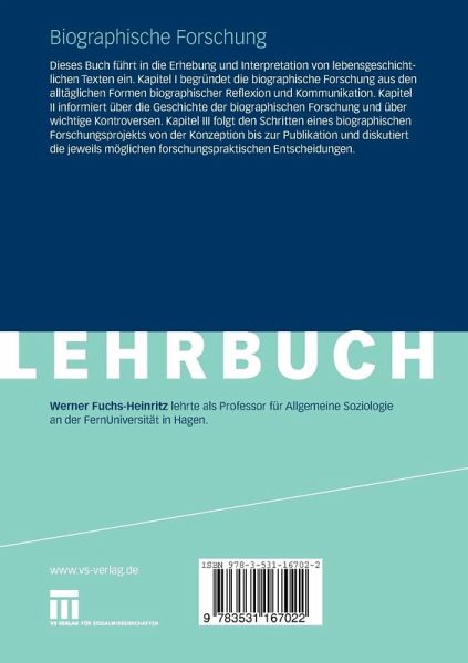 Dieses Buch führt in die Erhebung und Interpretation von lebensgeschichtlichen Texten ein. Kapitel I begründet die biographische Forschung aus den alltäglichen Formen biographischer Reflexion und Kommunikation. Kapitel II informiert über die
