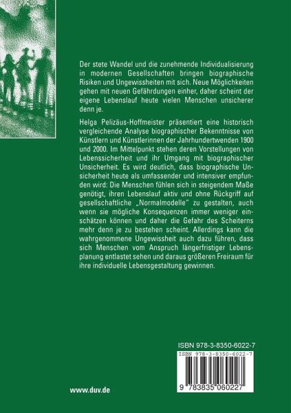 Helga Pelizäus-Hoffmeister präsentiert eine historisch vergleichende Analyse biographischer Bekenntnisse von Künstlern und Künstlerinnen der Jahrhundertwenden 1900 und 2000. Im Mittelpunkt stehen deren Vorstellungen von Lebenssicherheit und ihr Umgang mit biographischer Unsicherheit. Es wird deutlich, dass biographische Unsicherheit heute als umfassender und intensiver empfunden wird: Die Menschen fühlen sich in steigendem Maße genötigt, ihren Lebenslauf aktiv und ohne Rückgriff auf gesellschaftliche "Normalmodelle" zu gestalten, auch wenn sie mögliche Konsequenzen immer weniger einschätzen können und daher die Gefahr des Scheiterns mehr denn je zu bestehen scheint. Allerdings kann die wahrgenommene Ungewissheit auch dazu führen, dass sich Menschen vom Anspruch längerfristiger Lebensplanung entlastet sehen und daraus größeren Freiraum für ihre individuelle Lebensgestaltung gewinnen.