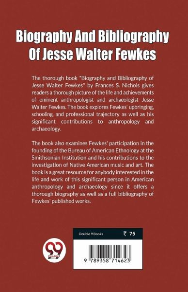 The thorough book "Biography and Bibliography of Jesse Walter Fewkes" by Frances S. Nichols gives readers a thorough picture of the life and achievements of eminent anthropologist and archaeologist Jesse Walter Fewkes. The book explores Fewkes' upbringing, schooling, and professional trajectory as well as his significant contributions to anthropology and archaeology. The book also examines Fewkes' participation in the founding of the Bureau of American Ethnology at the Smithsonian Institution and his contributions to the investigation of Native American music and art. The book is a great resource for anybody interested in the life and work of this significant person in American anthropology and archaeology since it offers a thorough biography as well as a full bibliography of Fewkes' published works.