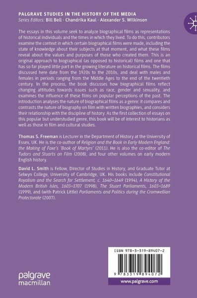 'Movies that exist merely to tell entertaining lies'?: Biography on Film; Thomas S. Freeman and David L. Smith.- Filming a Legend: Anthony Mann's El Cid (1961); Thomas S. Freeman.- Joan of Arc through medieval eyes and modern lenses: Dreyer 1928 and Bresson 1962; Elisabeth van Houts.- Blood, lust and the Virgin Queen: Helen Mirren's Elizabeth I; William B. Robison.- Shakespeare in Love and Anonymous: Two Films More or Less About Shakespeare; David Bevington.- That Hamilton Woman (1941); Samantha A. Cavell.- Twelve Years a Slave and the 'Unthinkability' of Enslaved Autobiography; Sean M. Kelley.- Abraham Lincoln and National Reconciliation in Lincoln; Kate Masur.- The Trials of Oscar Wilde (1960); David L. Smith.- Infectious Enthusiasm: The Story of Louis Pasteur (1936); Bart K. Holland.- Filming and Formatting the Explorer Hero: Captain Scott and Ealing Studios' Scott of the Antarctic (1948); Klaus Dodds.- Inside JFK's White House: the Myth of John F. Kennedy and Thirteen Days (2000); Andrew Priest.- Power and its Loss in The Iron Lady; Florence Sutcliffe-Braithwaite and Jon Lawrence.- Index