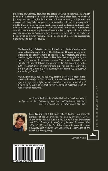 Biography and Memory discusses the return of Jews to their places of birth in Poland. A biographical urge to come full circle often leads to symbolic journeys to one's roots, but in the case of Shoah survivors, such journeys are unexpected, defying the generational definition of their biography, which mostly draws a demarcation line between wartime trauma and a new post- Holocaust life. Analyzed biographical stories collected from Israeli survivors indicate that such returns may be considered the last chapters of their wartime experiences. Survivors' biographies are examined in the context of both Jewish and Polish memory. This book will be of interest to sociologists, historians, and to general readers.
