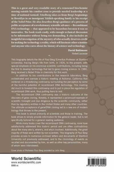 With a Foreword by Sydney Brenner (Nobel laureate in Physiology or Medicine, 2002) This biography details the life of Paul Berg (Emeritus Professor at Stanford University), tracing Berg's life from birth, in 1926, to the present, with special emphasis on his enormous scientific contributions, including being the first to develop technology that led to gene cloning science. In 1980, Berg received a Nobel Prize in chemistry for this work. In addition to his contributions in the research laboratory, Berg orchestrated and oversaw a historic meeting at Asilomar, California that centered on a threatening controversy surrounding the perception by some of the harmful potential of recombinant DNA technology. This meeting did much to forestall this controversy and to put in place the regulation of recombinant DNA work, thus putting fears to rest. The recombinant DNA controversy was a historic outcome of the discovery of gene cloning. Notably, it represented a paramount example of scientific foresight and due diligence by the scientific community, rather than by regulatory entities in the United States and many other countries. The ultimate acceptance of gene/DNA cloning led to a new era of modern biology that thrives to the present. This book is aimed primarily at scientists and those in training. The book strives to simply provide information for the general reader, but is not specifically tailored for a general reading audience. While many books cover the recombinant DNA controversy, none have satisfactorily addressed this historic period and are often contradictory about the many who's, where's, and why's involved. Additionally, the great majority of these were written by non-scientists. This biography of Paul Berg provides access to numerous archived letters and documents at Stanford University not previously addressed, and to the chronology of events as recalled and documented by him, as well as other key personalities, many of whom were interviewed.