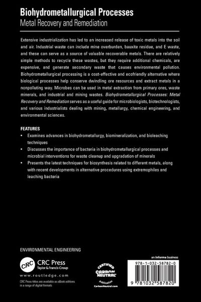 Biohydrometallurgical Processes: Metal Recovery and Remediation serves as a useful guide for microbiologists, biotechnologists and various industrialists dealing with mining, metallurgy, chemical engineering, and environmental sciences.