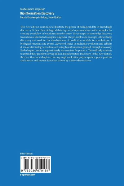 This new edition continues to illustrate the power of biological data in knowledge discovery. It describes biological data types and representations with examples for creating a workflow in bioinformation discovery. The concepts in knowledge discovery from data are illustrated using line diagrams. The principles and concepts in knowledge discovery are used for the development of prediction models for simulations of biological reactions and events. Advanced topics in molecular evolution and cellular & molecular biology are addressed using bioinformation gleaned through discovery. Each chapter contains approximately 10 exercises for practice. This will help students to expand their problem solving skills in Bioinformation Discovery. In this new edition, there are three new chapters covering single nucleotide polymorphism, genes, proteins and disease, and protein functions driven by surface electrostatics.