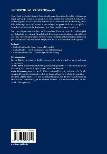 Die Autoren zeigen auf, welche rechtlichen, agrarischen, ökologischen und ökonomischen Rahmenbedingungen von Biokraftstoffen beachtet werden müssen. Die Betrachtung dieser Rahmenbedingungen und weiterer - eher anlagenbezogener - Faktoren ermöglicht es dann, Rückschlüsse auf die Realisierung von Biokraftstoffvorhaben zu ziehen.