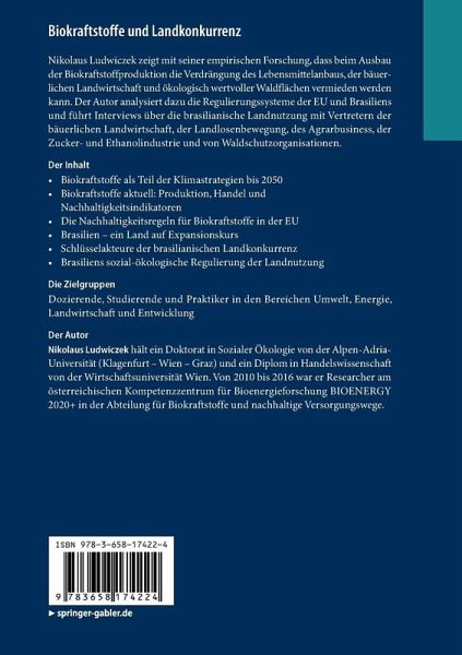 Nikolaus Ludwiczek zeigt mit seiner empirischen Forschung, dass beim Ausbau der Biokraftstoffproduktion die Verdrängung des Lebensmittelanbaus, der bäuerlichen Landwirtschaft und ökologisch wertvoller Waldflächen vermieden werden kann. Der Autor analysiert dazu die Regulierungssysteme der EU und Brasiliens und führt Interviews über die brasilianische Landnutzung mit Vertretern der bäuerlichen Landwirtschaft, der Landlosenbewegung, des Agrarbusiness, der Zucker- und Ethanolindustrie und von Waldschutzorganisationen.