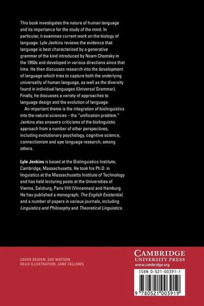 This book investigates the nature of human language and its importance for the study of the mind. In particular, it examines current work on the biology of language. Lyle Jenkins reviews the evidence that language is best characterized by a generative grammar of the kind introduced by Noam Chomsky in the 1950s and developed in various directions since that time. He then discusses research into the development of language which tries to capture both the underlying universality of human language, as well as the diversity found in individual languages (Universal Grammar). Finally, he discusses a variety of approaches to language design and the evolution of language. An important theme is the integration of biolinguistics into the natural sciences - the 'unification problem'. Jenkins also answers criticisms of the biolinguistic approach from a number of other perspectives, including evolutionary psychology, cognitive science, connectionism and ape language research, among others.
