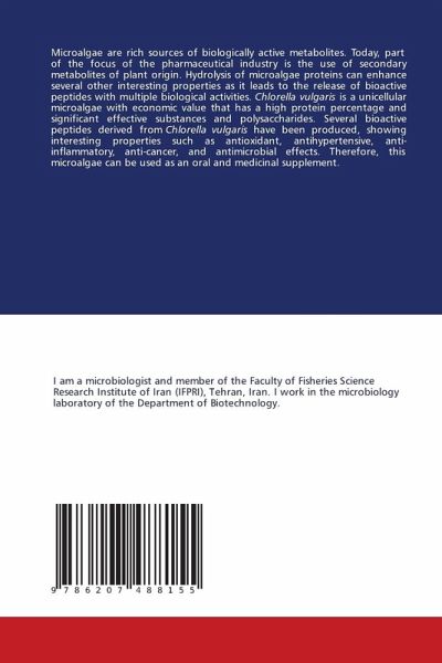 Microalgae are rich sources of biologically active metabolites. Today, part of the focus of the pharmaceutical industry is the use of secondary metabolites of plant origin. Hydrolysis of microalgae proteins can enhance several other interesting properties as it leads to the release of bioactive peptides with multiple biological activities. Chlorella vulgaris is a unicellular microalgae with economic value that has a high protein percentage and significant effective substances and polysaccharides. Several bioactive peptides derived from Chlorella vulgaris have been produced, showing interesting properties such as antioxidant, antihypertensive, anti-inflammatory, anti-cancer, and antimicrobial effects. Therefore, this microalgae can be used as an oral and medicinal supplement.