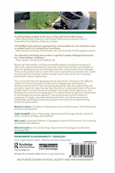 Recent agri-food studies, including commodity systems, the political economy of agriculture, regional development, and wider examinations of the rural dimension in economic geography and rural sociology have been confronted by three challenges. These can be summarized as: 'more than human' approaches to economic life; a 'post-structural political economy' of food and agriculture; and calls for more 'enactive', performative research approaches. This volume describes the genealogy of such approaches, drawing on the reflective insights of more than five years of international engagement and research. It demonstrates the kinds of new work being generated under these approaches and provides a means for exploring how they should be all understood as part of the same broader need to review theory and methods in the study of food, agriculture, rural development and economic geography. This radical collective approach is elaborated as the Biological Economies approach. The authors break out from traditional categories of analysis, reconceptualising materialities, and reframing economic assemblages as biological economies, based on the notion of all research being enactive or performative.