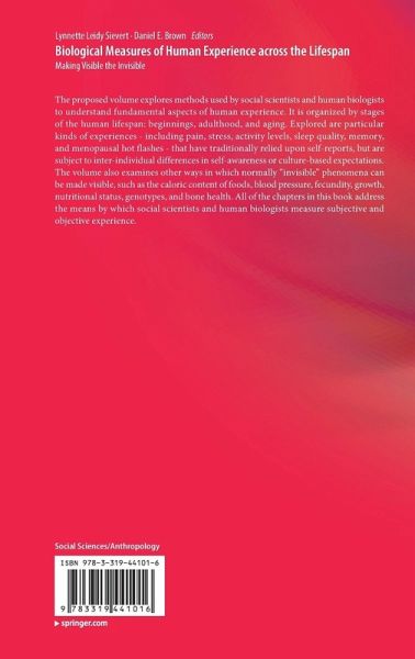 This volume explores methods used by social scientists and human biologists to understand fundamental aspects of human experience. It is organized by stages of the human lifespan: beginnings, adulthood, and aging. Explored are particular kinds of experiences - including pain, stress, activity levels, sleep quality, memory, and menopausal hot flashes - that have traditionally relied upon self-reports, but are subject to inter-individual differences in self-awareness or culture-based expectations. The volume also examines other ways in which normally "invisible" phenomena can be made visible, such as the caloric content of foods, blood pressure, fecundity, growth, nutritional status, genotypes, and bone health. All of the chapters in this book address the means by which social scientists and human biologists measure subjective and objective experience.