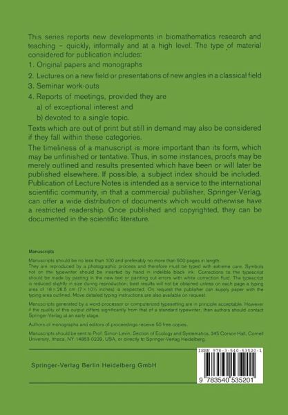 " . . . behavior is not, what an organism does itself, but to what we point. Therefore, whether a type of behavior of an organism is adequate as a certain configuration of movements, will depend on the environment in which we de scribe it. " (Humberto Maturana, Francisco Varela: El arbol del conocimiento, 1984) "A thorough analysis of behavior must result in a scheme, that shows all regularities that are to be found between the sensorical input and the motorical output of an animal. This scheme is an abstract representation of the brain. " (Valentin Braitenberg: Gehirngespinste, 1973) During the 70ies, when Biomathematics (beyond Biomedical Statistics and Com puting) became more popular at universities and research institutes, the problems dealt with came mainly from the general fields of 'Population Biology' and 'Complex Systems Analysis' such as epidemics, ecosystems analysis, morphogenesis, genetics, immunology and neurology (see the first series of Springer Lecture Notes in Biomathematics). Since then, the picture has not considerably changed, and it seems that "a thorough analysis of behavior" of single organisms and, moreover, of their mutual interactions, is far from being understood. On the contrary, mathematical modellers and analysts have been well advised to restrict their investigations to specific aspects of 'biological behavior', one of which is 'biological motion'. Until now, only a few Conference Proceedings or Lecture Notes have paid attention to this important aspect, some of the earlier examples being Vol. 24: 'The measurement of biological shape and shape changes' (1978) or Vol.