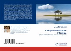 Complete nitrification was investigated with synthetic wastewater containing high ammonium nitrogen concentration and low COD by the activated sludge as a chemo-autotrophic process in the Continuously Stirred Tank Reactor (CSTR). The nitrification process was operated under the optimal conditions to achieve the complete nitrification. Then inhibition of complete nitrification process by adding aniline step wise was studied. It was found that nitrification process started to be inhibited at aniline concentration of 20 mg/L. Ammonium removal efficiency and nitrate formation efficiency were swiftly plunged, especially inhibition of aniline on nitrite oxidation was more than on ammonia oxidation. Fluorescence in situ hybridization (FISH) technique was also used to study the nitrifier population shift for completed and inhibited nitrification. Results shown that inhibitor aniline affected to nitrifying microorganism population. And aniline affected to the reduction of nitrite oxidation bacteria population was more than that of ammonium oxidation bacteria.
