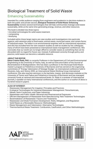 Introduction; Microbial Technologies; Management Options of Food Waste: A Review; F. Girotto L. Alibardi and R. Cossu; Effect of Increasing Total Solids Contents on Anaerobic Digestion of Food Waste under Mesophilic Conditions: Performance and Microbial Characteristics Analysis; Jing Yi Bin Dong Jingwei Jin and Xiaohu Dai; Microbial Anaerobic Digestion (Bio-Digesters) as an Approach to the Decontamination of Animal Wastes in Pollution Control and the Generation of Renewable Energy; Christy E. Manyi-Loh Sampson N. Mamphweli Edson L. Meyer Anthony I. Okoh Golden Makaka and Michael Simon; New Steady-State Microbial Community Compositions and Process Performances in Biogas Reactors Induced by Temperature Disturbances; Gang Luo Davide De Francisci Panagiotis G. Kougias Treu Laura Xinyu Zhu and Irini Angelidaki; Composting; Composting of Organic Fraction of Municipal Solid Waste: A Pilot Plant in Maxixe District Mozambique; C. Collivignarelli A. Perteghella and M. Vacchari; Changes in Bacterial and Fungal Communities across Compost Recipes Preparation Methods and Composting Times; Deborah A. Neher Thomas R. Weicht Scott T. Bates Jonathan W. Leff and Noah Fierer; Effects of Bulking Agents Load Size or Starter Cultures in Kitchen-Waste Composting; Norazlin Abdullah Nyuk Ling Chin Mohd Noriznan Mokhtar and Farah Saleena Taip; Microbial Diversity of Vermicompost Bacteria that Exhibit Useful Agricultural Traits and Waste Management Potential; Jayakumar Pathma and Natarajan Sakthivel; Biodrying; Criteria for Assessing the Viability of a Small Scale MSW Bio-Drying Plant Aimed at RDF Production for Local Use; E. C. Rada and M. Ragazzi; Technical and Economic Efficiency of Utilization of Biogas from Animal Waste for Energy Generation; E. Minciuc R. Patrascu M. Norisor and D. Tutica; Potential of Bio-Drying Applied to Exhausted Grape Marc; Elena Cristina Rada and Marco Ragazzi; Index