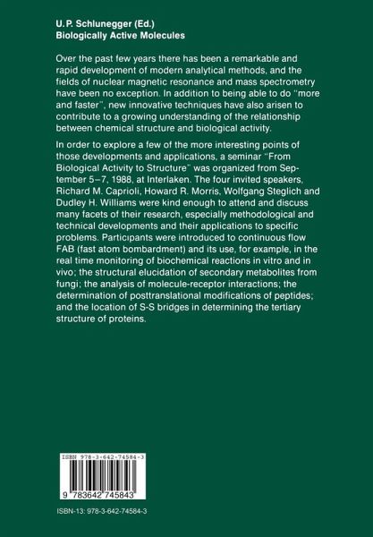 Over the past few years there has been a remarkable and rapid development of modern analytical methods, and the fields of nuclear magnetic resonance and mass spectrometry have been no exception. In addition to being able to do "more and faster", new innovative techniques have also arisen to contribute to a growing understanding of the relationship between chemical structure and biological activity. In order to explore a few of the more interesting points of those developments and applications, a seminar "From Biological Activity to Structure" was organized from September 5-7, 1988, at Interlaken. The four invited speakers, Richard M. Caprioli, Howard R. Morris, Wolfgang Steglich and Dudley H. Williams were kind enough to attend and discuss many facets of their research, especially methodological and technical developments and their applications to specific problems. Participants were introduced to continuous flow FAB (fast atom bombardment) and its use, for example, in the real time monitoring of biochemical reactions in vitro and in vivo; the structural elucidation of secondary metabolites from fungi; the analysis of molecule-receptor interactions; the determination of posttranslational modifications of peptides; and the location of S-S bridges in determining the tertiary structure of proteins.
