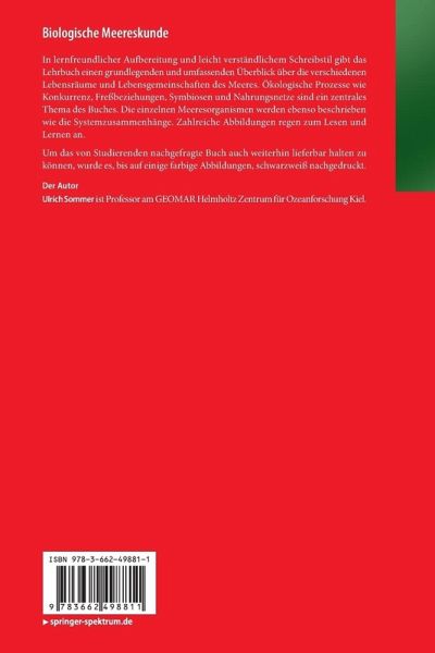 In lernfreundlicher Aufbereitung und leicht verständlichem Schreibstil gibt das Lehrbuch einen grundlegenden und umfassenden Überblick über die verschiedenen Lebensräume und Lebensgemeinschaften des Meeres. Ökologische Prozesse wie Konkurrenz, Freßbeziehungen, Symbiosen und Nahrungsnetze sind ein zentrales Thema des Buches. Die einzelnen Meeresorganismen werden ebenso beschrieben wie die Systemzusammenhänge. Zahlreiche Abbildungen regen zum Lesen und Lernen an.