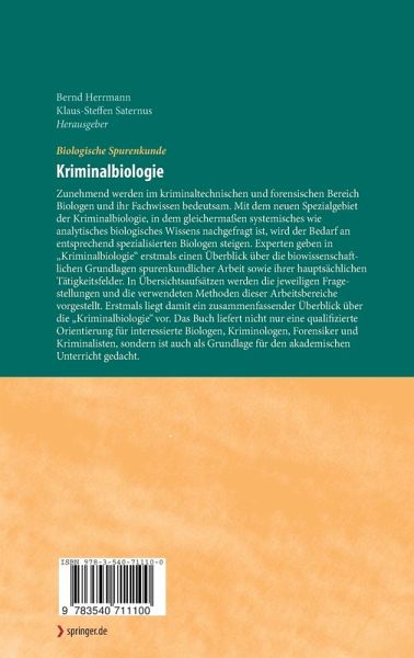 Zunehmend werden im kriminaltechnischen und forensischen Bereich Biologen und ihr Fachwissen bedeutsam. Mit dem neuen Spezialgebiet der Kriminalbiologie, in dem gleichermaßen systemisches wie analytisches biologisches Wissens nachgefragt ist, wird der Bedarf an entsprechend spezialisierten Biologen steigen. Experten geben in "Kriminalbiologie" erstmals einen Überblick über die biowissenschaftlichen Grundlagen spurenkundlicher Arbeit sowie ihrer hauptsächlichen Tätigkeitsfelder. In Übersichtsaufsätzen werden die jeweiligen Fragestellungen und die verwendeten Methoden dieser Arbeitsbereiche vorgestellt. Erstmals liegt damit ein zusammenfassender Überblick über die "Kriminalbiologie" vor. Das Buch liefert nicht nur eine qualifizierte Orientierung für interessierte Biologen, Kriminologen, Forensiker und Kriminalisten, sondern ist auch als Grundlage für den akademischen Unterricht gedacht.
