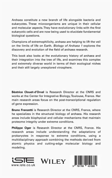 Archaea constitute a new branch of life alongside bacteria and eukaryotes. These microorganisms are unique in their cellular and molecular aspects. They have evolutionary links with the first eukaryotic cells and are now being used to elucidate fundamental biological questions. Champions of extremophilicity, archaea are helping to lift the veil on the limits of life on Earth. Biology of Archaea 1 explores the discovery and evolution of the field of archaea research. This book also looks at the evolutionary history of archaea and their integration into the tree of life, and examines this complex and extremely diverse world in terms of their ecological niches and their still largely unexplored virosphere.