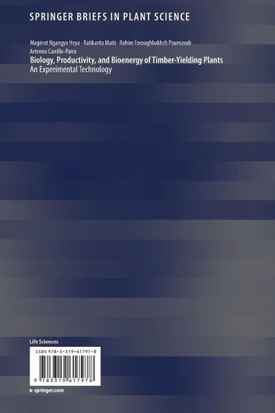 This book deals with the characterization of the vegetation, morphology, phenological development, biomass production (leaf, litter, wood), and bioenergy of some timber-yielding species of Northeast Mexico, which will serve as a guide to study timber-yielding plants in the native vegetation of Tamaulipan thornscrub and experimental plantations. This includes morphology, vegetation cover, biomass production in terms of volume leaf biomass, litter, and volume of fire wood and timber. Special emphasis is given to the estimation of bioenergy products and chemical composition (Ph, extractable lignin, and inorganic elements). Large variations exist in vegetation cover, morphology, phenological development, biomass production of leaf and litter, volume of wood and various variable of bioenergy products among the selected species. The maximum production was found in summer and the volume of the harvestable timber was obtained in experimental plantations. This book, therefore, will serve as a practical handbook to characterize timber-yielding plants, which will help to efficiently manage forestry resources.