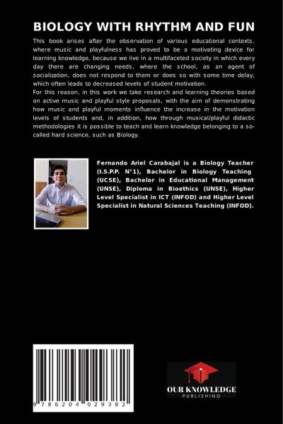 This book arises after the observation of various educational contexts, where music and playfulness has proved to be a motivating device for learning knowledge, because we live in a multifaceted society in which every day there are changing needs, where the school, as an agent of socialization, does not respond to them or does so with some time delay, which often leads to decreased levels of student motivation. For this reason, in this work we take research and learning theories based on active music and playful style proposals, with the aim of demonstrating how music and playful moments influence the increase in the motivation levels of students and, in addition, how through musical/playful didactic methodologies it is possible to teach and learn knowledge belonging to a so-called hard science, such as Biology.