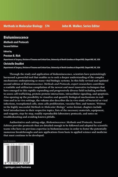 Through the study and application of bioluminescence, scientists have painstakingly harnessed a powerful tool that enables us to seek a deeper understanding of the complex mechanisms underpinning so many vital biologic systems. In this fully revised and updated second edition of Bioluminescence: Methods and Protocols, expert researchers contribute a readable and utilitarian compilation of the newest and most innovative techniques that have emerged in this rapidly expanding and progressively diverse field including methods to assess cell trafficking, protein-protein interactions, intracellular signaling, and apoptosis. Also opening up the possibility to visualize and quantify biological mechanisms in real-time and in in vivo settings, the volume also describes the in vivo study of bacterial or viral infections, transplanted cells, stem cells proliferation, vascular flow, and tumors. Written in the highly successful Methods in Molecular Biology(TM) series format, chapters include brief introductions to their respective topics, lists of the necessary materials, equipment, and reagents, step-by-step, readily reproducible laboratory protocols, and notes on troubleshooting and avoiding known pitfalls.
