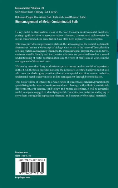 This book provides comprehensive, state-of-the-art coverage of the natural, sustainable alternatives that use a wide range of biological materials in the removal/detoxification of heavy metals, consequently leading to the improvement of crops in these soils. Novel, environmentally friendly and inexpensive solutions are presented based on a sound understanding of metal contamination and the roles of plants and microbes in the management of these toxic soils.