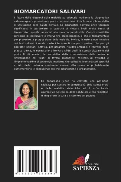 Il futuro della diagnosi della malattia parodontale mediante la diagnostica salivare appare promettente per il suo potenziale di rivoluzionare le modalità di valutazione della salute dentale. La diagnostica salivare offre vantaggi significativi, in particolare la capacità di rilevare livelli molto bassi di biomarcatori specifici associati alla malattia parodontale. Questa sensibilità consente di individuare e intervenire precocemente, il che è fondamentale per prevenire la progressione della malattia. Inoltre, la natura non invasiva dei test salivari li rende molto interessanti sia per i pazienti che per gli operatori sanitari. Tuttavia, per garantire risultati affidabili e coerenti nella pratica clinica, è necessario affrontare sfide quali la standardizzazione dei protocolli di analisi, la variabilità della composizione della saliva e l'integrazione nei flussi di lavoro diagnostici esistenti. Lo sviluppo e l'implementazione di tecnologie moderne che utilizzano biomarcatori specifici a lato della poltrona sembrano essere all'orizzonte e probabilmente aumenteranno le conoscenze cliniche diagnostiche e prognostiche.