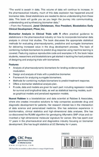 The book offers practical guidance on how to incorporate biomarker data analysis in clinical trial studies. The book discusses the appropriate statistical methods for evaluating pharmacodynamic, predictive and surrogate biomarkers for delivering increased value in the drug development process.