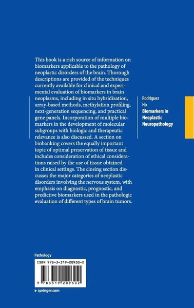 This book is a rich source of information on biomarkers applicable to the pathology of neoplastic disorders of the brain. Thorough descriptions are provided of the techniques currently available for clinical and experimental evaluation of biomarkers in brain neoplasms, including in situ hybridization, array-based methods, methylation profiling, next-generation sequencing, and practical gene panels. Incorporation of multiple biomarkers in the development of molecular subgroups with biologic and therapeutic relevance is also discussed. A section on biobanking covers the equally important topic of optimal preservation of tissue and includes consideration of ethical considerations raised by the use of tissue obtained in clinical settings. The closing section discusses the major categories of neoplastic disorders involving the nervous system, with emphasis on diagnostic, prognostic, and predictive biomarkers used in the pathologic evaluation of different types of brain tumor.