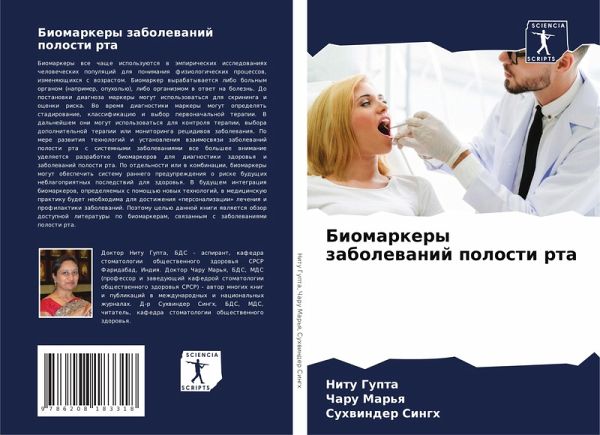 Biomarkery wse chasche ispol'zuütsq w ämpiricheskih issledowaniqh chelowecheskih populqcij dlq ponimaniq fiziologicheskih processow, izmenqüschihsq s wozrastom. Biomarker wyrabatywaetsq libo bol'nym organom (naprimer, opuhol'ü), libo organizmom w otwet na bolezn'. Do postanowki diagnoza markery mogut ispol'zowat'sq dlq skrininga i ocenki riska. Vo wremq diagnostiki markery mogut opredelqt' stadirowanie, klassifikaciü i wybor perwonachal'noj terapii. V dal'nejshem oni mogut ispol'zowat'sq dlq kontrolq terapii, wybora dopolnitel'noj terapii ili monitoringa recidiwow zabolewaniq. Po mere razwitiq tehnologij i ustanowleniq wzaimoswqzi zabolewanij polosti rta s sistemnymi zabolewaniqmi wse bol'shee wnimanie udelqetsq razrabotke biomarkerow dlq diagnostiki zdorow'q i zabolewanij polosti rta. Po otdel'nosti ili w kombinacii, biomarkery mogut obespechit' sistemu rannego preduprezhdeniq o riske buduschih neblagopriqtnyh posledstwij dlq zdorow'q. V buduschem integraciq biomarkerow, opredelqemyh s pomosch'ü nowyh tehnologij, w medicinskuü praktiku budet neobhodima dlq dostizheniq 'personalizacii' lecheniq i profilaktiki zabolewanij. Poätomu cel'ü dannoj knigi qwlqetsq obzor dostupnoj literatury po biomarkeram, swqzannym s zabolewaniqmi polosti rta.