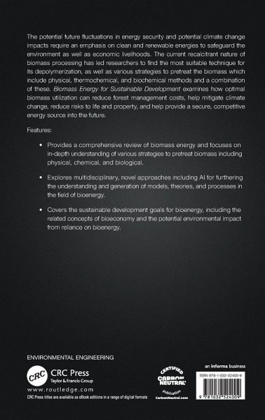 The potential future fluctuations in energy security and potential climate change impacts require an emphasis on clean and renewable energies to safeguard the environment as well as economic livelihoods. The current recalcitrant nature of biomass processing has led researchers to find the most suitable technique for its depolymerization, as well as various strategies to pretreat the biomass which include physical, thermochemical, and biochemical methods and a combination of these. Biomass Energy for Sustainable Development examines how optimal biomass utilization can reduce forest management costs, help mitigate climate change, reduce risks to life and property, and help provide a secure, competitive energy source into the future.