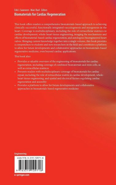 This book offers readers a comprehensive biomaterials-based approach to achieving clinically successful, functionally integrated vasculogenesis and myogenesis in the heart. Coverage is multidisciplinary, including the role of extracellular matrices in cardiac development, whole-heart tissue engineering, imaging the mechanisms and effects of biomaterial-based cardiac regeneration, and autologous bioengineered heart valves. Bringing current knowledge together into a single volume, this book provides a compendium to students and new researchers in the field and constitutes a platform to allow for future developments and collaborative approaches in biomaterials-based regenerative medicine, even beyond cardiac applications.