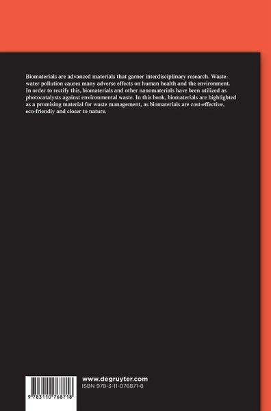 Biomaterials are advanced materials that garner interdisciplinary research. Wastewater pollution causes many adverse effects on human health and the environment. In order to rectify this, biomaterials and other nanomaterials have been utilized as photocatalysts against environmental waste. In this book, biomaterials are highlighted as a promising material for waste management, as biomaterials are cost-effective, eco-friendly and closer to nature.