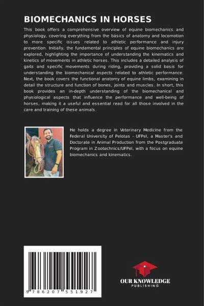 This book offers a comprehensive overview of equine biomechanics and physiology, covering everything from the basics of anatomy and locomotion to more specific issues related to athletic performance and injury prevention. Initially, the fundamental principles of equine biomechanics are explored, highlighting the importance of understanding the kinematics and kinetics of movements in athletic horses. This includes a detailed analysis of gaits and specific movements during riding, providing a solid basis for understanding the biomechanical aspects related to athletic performance. Next, the book covers the functional anatomy of equine limbs, examining in detail the structure and function of bones, joints and muscles. In short, this book provides an in-depth understanding of the biomechanical and physiological aspects that influence the performance and well-being of horses, making it a useful and essential read for all those involved in the care and training of these animals.