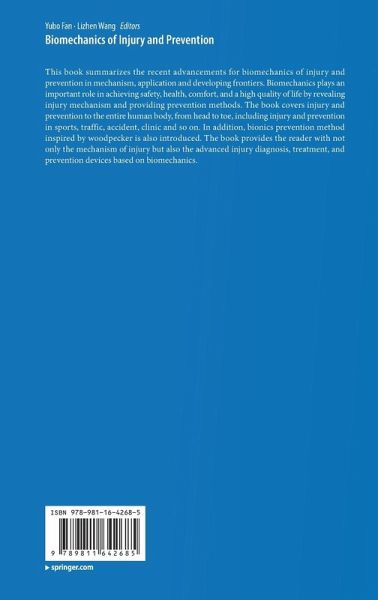 This book summarizes the recent advancements for biomechanics of injury and prevention in mechanism, application and developing frontiers. Biomechanics plays an important role in achieving safety, health, comfort, and a high quality of life by revealing injury mechanism and providing prevention methods. The book covers injury and prevention to the entire human body, from head to toe, including injury and prevention in sports, traffic, accident, clinic and so on. In addition, bionics prevention method inspired by woodpecker is also introduced. The book provides the reader with not only the mechanism of injury but also the advanced injury diagnosis, treatment, and prevention devices based on biomechanics.