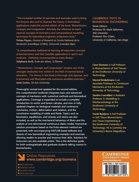 Ideal for students taking biomechanics courses, this fully updated second edition integrates basic and advanced concepts of mechanics with numerical methods and biomedical applications. It includes a brand new introduction to vector and tensor calculus, dozens of new examples, exercises and solutions, and online MATLAB-based FEM code.