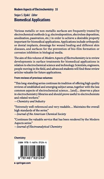 This new volume of Modern Aspect of Electrochemistry brings to the scientists, engineers and students summarized results and new concepts of surface treatments for the biomedical applications which may have significant influence for the future practical applications.