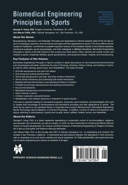 Biomedical Engineering Principles in Sports contains in-depth discussions on the fundamental biomechanical and physiological principles underlying the acts of throwing, shooting, hitting, kicking, and tackling in sports, as well as vision training, sports injury, and rehabilitation. The topics include: