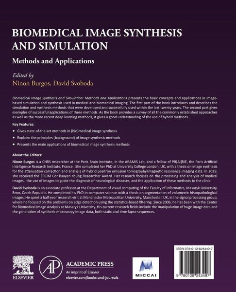 Biomedical Image Synthesis and Simulation: Methods and Applications presents the basic concepts and applications in image-based simulation and synthesis used in medical and biomedical imaging. The first part of the book introduces and describes the simulation and synthesis methods that were developed and successfully used within the last twenty years, from parametric to deep generative models. The second part gives examples of successful applications of these methods. Both parts together form a book that gives the reader insight into the technical background of image synthesis and how it is used, in the particular disciplines of medical and biomedical imaging. The book ends with several perspectives on the best practices to adopt when validating image synthesis approaches, the crucial role that uncertainty quantification plays in medical image synthesis, and research directions that should be worth exploring in the future.