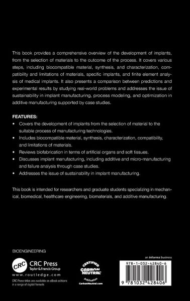 This book covers the development of implants from selection of material to outcome following various steps, including biocompatible material, synthesis, and characterization.
