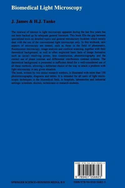New interest in light microscopy of the last few years has not been backed up by adequate general literature. This book intends to fill the gap between specialized texts on detailed topics and general introductory booklets, mostly dealing with the use of the conventional light microscope only. In this short textbook both new developments in microscopy and basic facts of image formation will be treated, including often neglected topics such as axial resolving power, lens construction, photomicrography and correct use of phase-en interference contrast systems. Theoretical background will be dealt with as far as necessary for a well-considered application of these techniques enabling a deliberate choice for the approach of a certain problem. Over 150 illustrations (photomicrographs and diagrams) complete the information on microscopy of the nineties in the biomedical field, intended for scientists, doctors, technicians and research students. Many drawings have been contributed by the illustrator R. Kreuger; the photographic work has been executed by J. Peeterse. Secretarial assistance in preparing the manuscript was given by Ms T. M. S. Pierik. Dr M. J. Pearson has corrected the English of the final text.