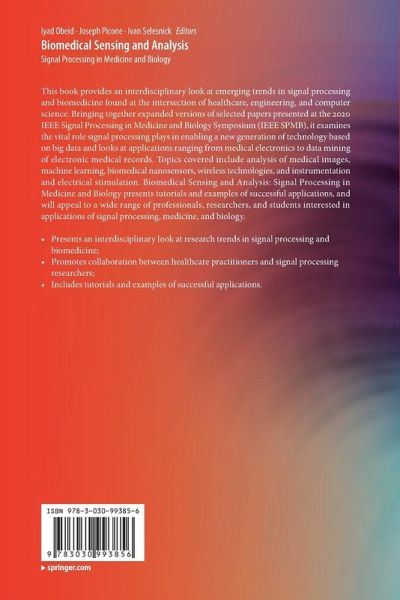 This book provides an interdisciplinary look at emerging trends in signal processing and biomedicine found at the intersection of healthcare, engineering, and computer science. Bringing together expanded versions of selected papers presented at the 2020 IEEE Signal Processing in Medicine and Biology Symposium (IEEE SPMB), it examines the vital role signal processing plays in enabling a new generation of technology based on big data and looks at applications ranging from medical electronics to data mining of electronic medical records. Topics covered include analysis of medical images, machine…mehr
