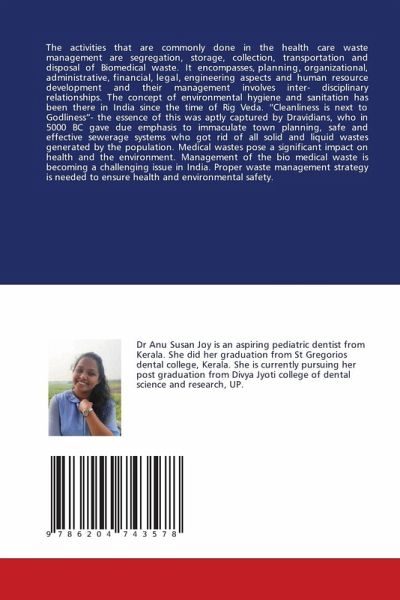 The activities that are commonly done in the health care waste management are segregation, storage, collection, transportation and disposal of Biomedical waste. It encompasses, planning, organizational, administrative, financial, legal, engineering aspects and human resource development and their management involves inter- disciplinary relationships. The concept of environmental hygiene and sanitation has been there in India since the time of Rig Veda. "Cleanliness is next to Godliness"- the essence of this was aptly captured by Dravidians, who in 5000 BC gave due emphasis to immaculate town planning, safe and effective sewerage systems who got rid of all solid and liquid wastes generated by the population. Medical wastes pose a significant impact on health and the environment. Management of the bio medical waste is becoming a challenging issue in India. Proper waste management strategy is needed to ensure health and environmental safety.