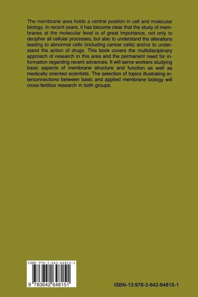 Membrane research holds a central position in cell and molecular biology. In recent years it has become clear that the study of membranes at the molecular level is of great importance not only to decipher all cellular processes but also to understand the alterations leading to abnormal cells (including cancer cells) and/or to understand the action of various drugs. This book covers the multidisciplinary approach of research in this area and the permanent need for information regarding recent advances. It will serve both workers studying basic aspects of membrane structure and function as well as medically oriented scientists. The selection of topics illustrating interconnections between basic and applied membrane biology will cross-fertilize research in both groups.