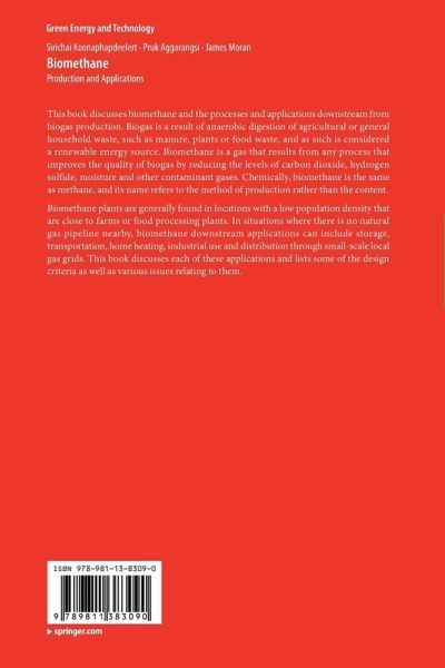 This book discusses biomethane and the processes and applications downstream from biogas production. Biogas is a result of anaerobic digestion of agricultural or general household waste, such as manure, plants or food waste, and as such is considered a renewable energy source. Biomethane is a gas that results from any process that improves the quality of biogas by reducing the levels of carbon dioxide, hydrogen sulfide, moisture and other contaminant gases. Chemically, biomethane is the same as methane, and its name refers to the method of production rather than the content.