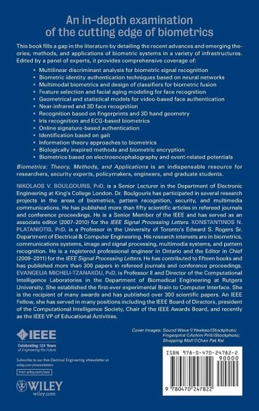 Nikolaos V. Boulgouris, PhD, is a Senior Lecturer in the Department of Electronic Engineering at King's College London. Dr. Boulgouris has participated in several research projects in the areas of biometrics, pattern recognition, security, and multimedia communications. He has published more than fifty scientific articles in refereed journals and conference proceedings. He is a Senior Member of the IEEE and has served as an associate editor (2007-2010) for the IEEE Signal Processing Letters. Konstantinos N. Plataniotis, PhD, is a Professor in the University of Toronto's Edward S. Rogers Sr. Department of Electrical & Computer Engineering. His research interests are in biometrics, communications systems, image and signal processing, multimedia systems, and pattern recognition. He is a registered professional engineer in Ontario and the Editor in Chief (2009-2011) for the IEEE Signal Processing Letters. He has contributed to fifteen books and has published more than 300 papers in refereed journals and conference proceedings. Evangelia Micheli-Tzanakou, PhD, is Professor II and Director of the Computational Intelligence Laboratories in the Department of Biomedical Engineering at Rutgers University. She established the first-ever experimental Brain to Computer Interface. She is the recipient of many awards and has published over 300 scientific papers. An IEEE Fellow, she has served in many positions including the IEEE Board of Directors, president of the Computational Intelligence Society, Chair of the IEEE Awards Board, and recently as the IEEE VP of Educational Activities.