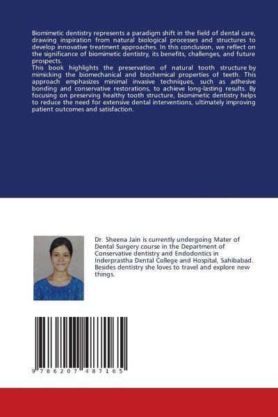 Biomimetic dentistry represents a paradigm shift in the field of dental care, drawing inspiration from natural biological processes and structures to develop innovative treatment approaches. In this conclusion, we reflect on the significance of biomimetic dentistry, its benefits, challenges, and future prospects.This book highlights the preservation of natural tooth structure by mimicking the biomechanical and biochemical properties of teeth. This approach emphasizes minimal invasive techniques, such as adhesive bonding and conservative restorations, to achieve long-lasting results. By focusing on preserving healthy tooth structure, biomimetic dentistry helps to reduce the need for extensive dental interventions, ultimately improving patient outcomes and satisfaction.
